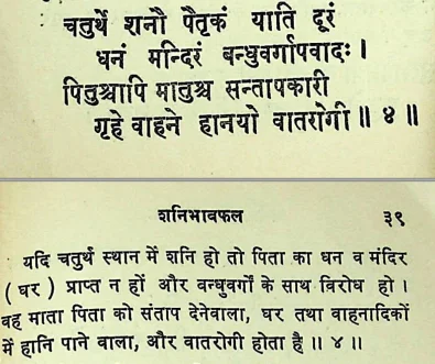 4. शनि चौथे भाव में
