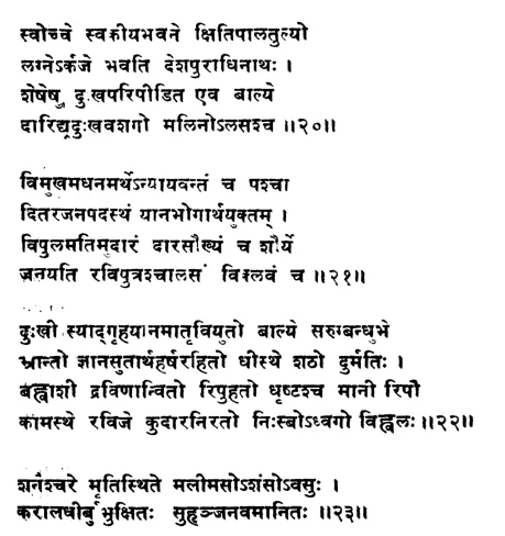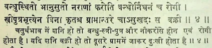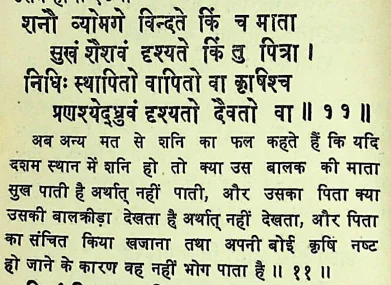 वराहमिहिर कृत बृहज्जातक के अठारवें अध्याय अर्थात भावाध्याय में शनि के बारहों भाव में फल दिए गए हैं |