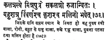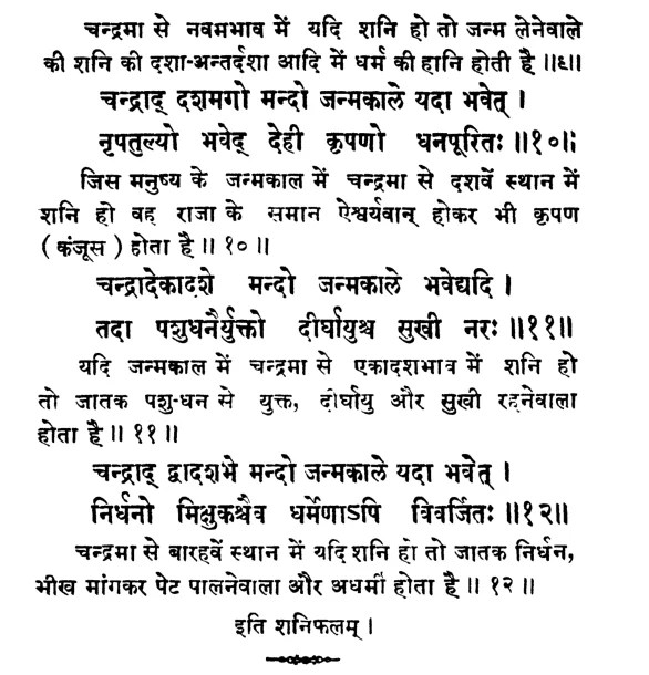 फलदीपिका में शनि के बारह भावों में स्थित होने के ये फल कहे गये हैं :
