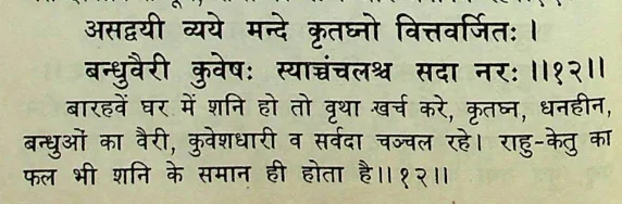 12. शनि बारहवें भाव में
