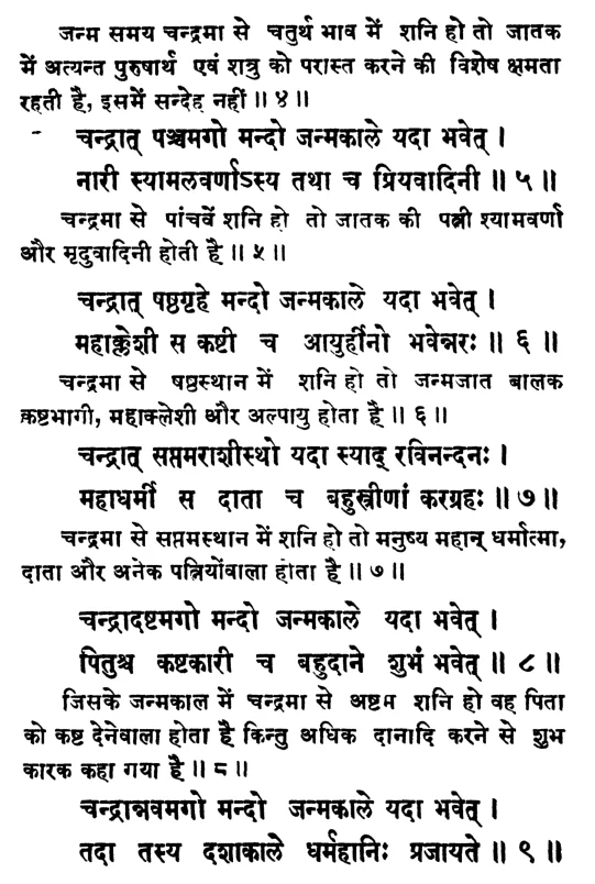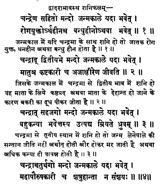 इसके अतिरिक्त गौरी जातक नामक ग्रंथ में शनि का चंद्रमा से विभिन्न भावों में स्थिति का फल बताया गया है: