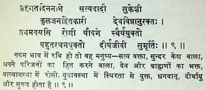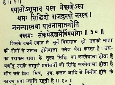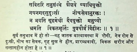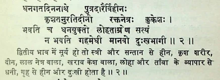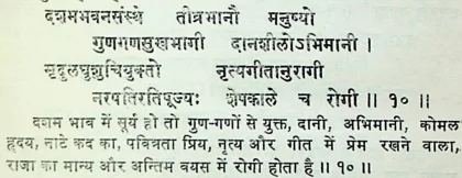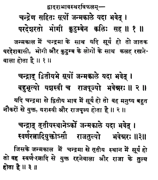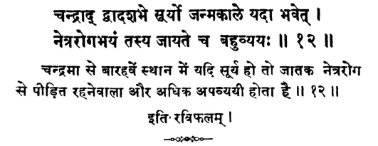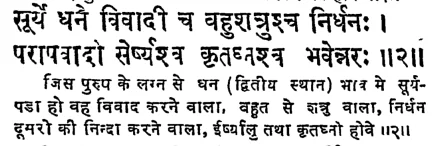 फलदीपिका में सूर्य के बारह भावों में फल के विषय में ये श्लोक मिलते हैं :