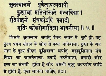 5. सूर्य पाँचवे भाव में