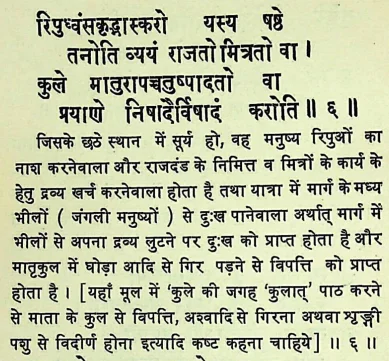 6. सूर्य छठे भाव में